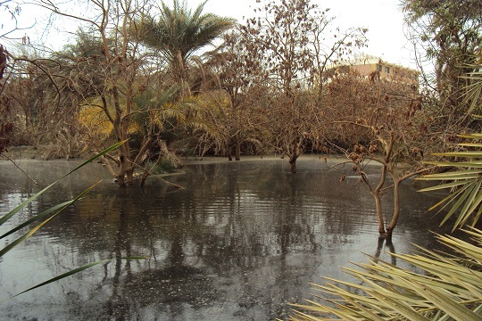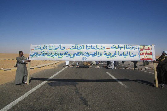 أنّى تتجه عيناك سترى المياه المتفجرة من الأرض تختلط بالصرف الصحي داخل مرافق القرية المقدر عدد سكانها بخمسة عشر ألف نسمة، نتيجة عمليات التنقيب عن النفط والغاز واعتماد تقنية التكسير الهيدروليكي- التي أعلنت مصر رسمياًعن بدء استخدامها عام 2015 رغم حظرها في غالبية الدول المتقدمة.