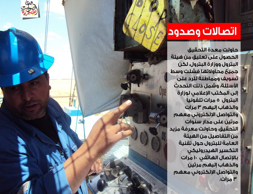 زارت معدة التحقيق مقر الهيئة العامة للبترول في القاهرة قرابة الـ 6 مرات للتواصل مع المسؤولين والحصول على تعليق حيال ما كشفه التحقيق، لكن دون جدوى.